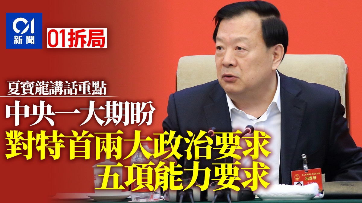 å¤é§±æ°å± ä¸å¤®æ²»æ¸¯æ°èµ·é» 馿¸¯01 峿ä¸å from cdn.hk01.com 港澳辦, 中聯辦, 中共, 張曉明, 夏寶龍, 香港, 習近平, 駱惠寧, 特區政府, 王志民 夏寶龍(1952年12月2日 - ),男,漢族,天津人,中華人民共和國政治人物,現任第十三屆全國政協 副主席,國務院港澳事務辦公室主任、黨組書記,中央港澳工作領導小組常務副組長。 1973年11月加入中國共產黨。 1985年1月畢業於天津市河西區職工大學中文專業在職本科,1997年7月畢業於中共天津.
